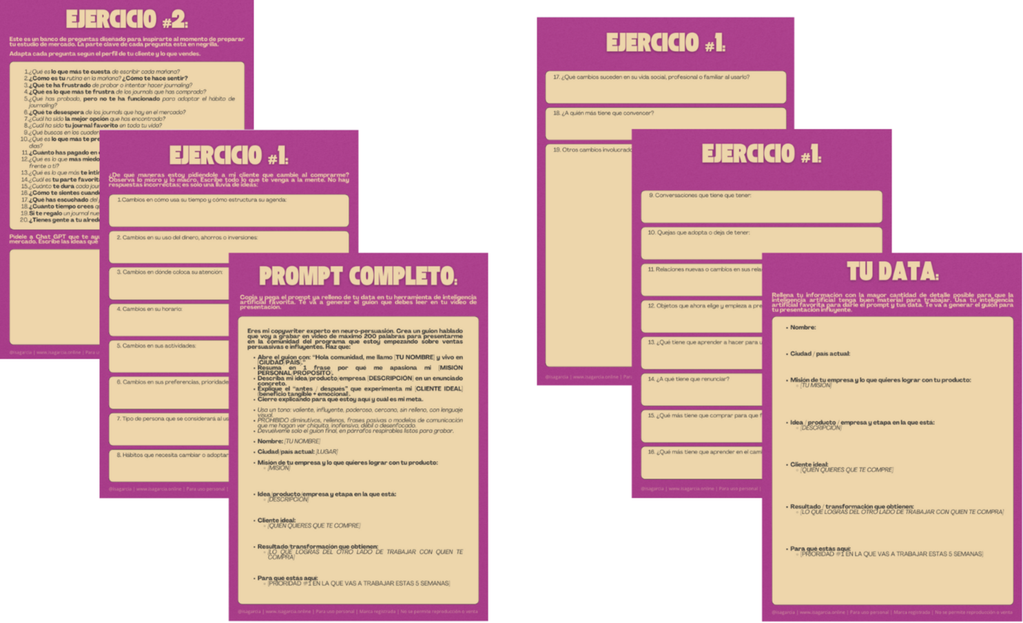 Material educativo en línea (no descargable) con guías, ejercicios y ejemplos reales para estructurar su proceso de ventas.